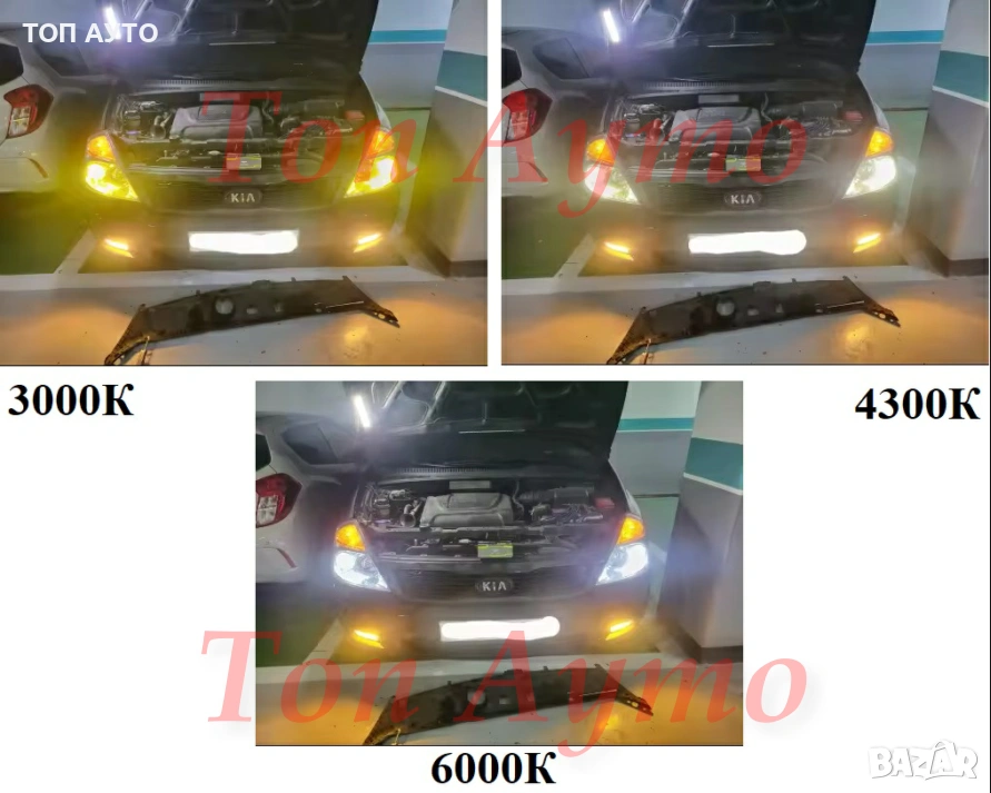 - 3000K (жълто) – Подобрява видимостта при мъгла, дъжд или сняг, като намалява отблясъците и подобрява контраста.