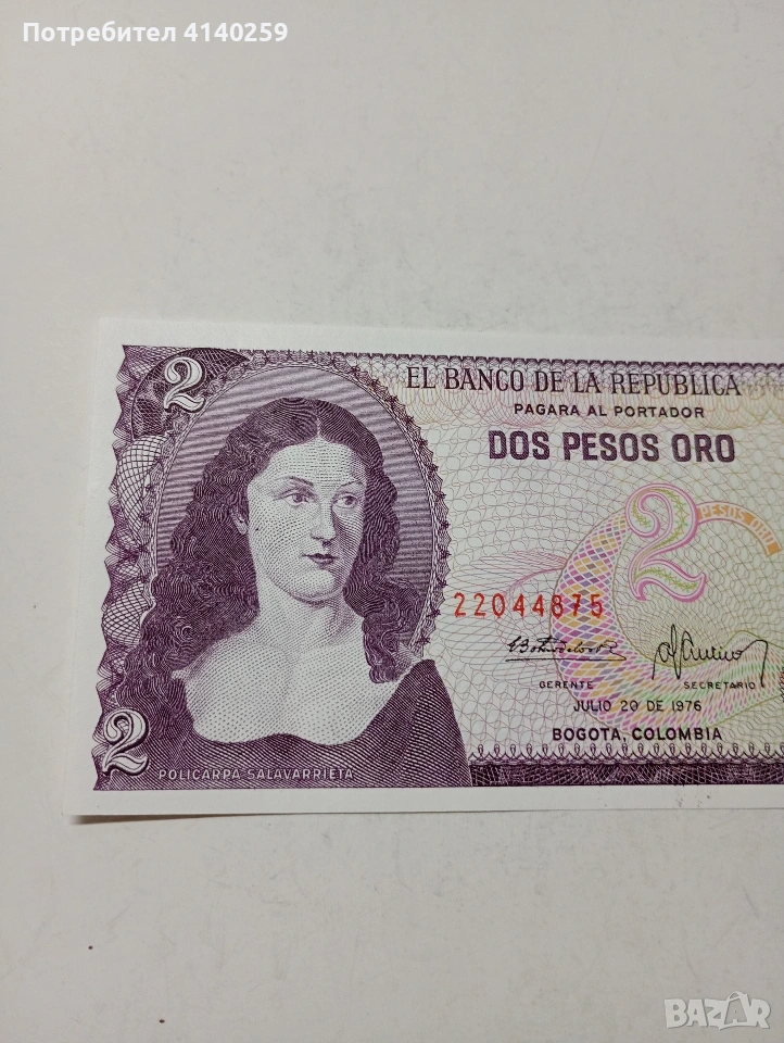 КОЛУМБИЯ БАНКНОТА 2 ПЕСОС 1976 Г СЪСТОЯНИЕ НОВО ПОЛУЧАВАТЕ СНИМАНАТА БАНКНОТА РАЗГЛЕДАЙТЕ ДРУГИТЕ МИ ОБЯВИ ДА КОМБИНИРАТЕ ДОСТАВКА ЕКОНТ ЗА ВАРНА ЛИЧНО