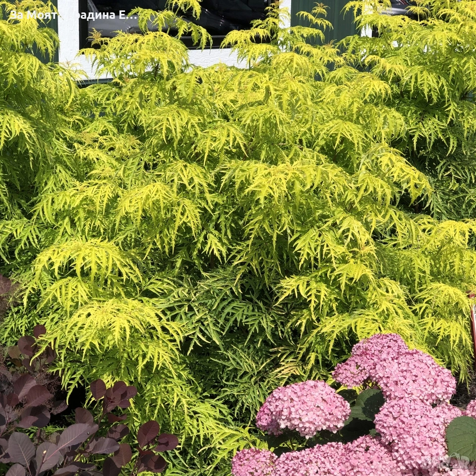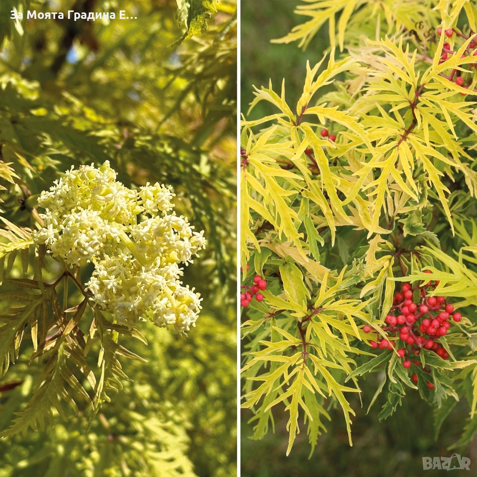Червен бъз Lemony Lace – декоративен храст с лимоненожълта окраска Цена 12,99 € Sambucus racemosa ‘Lemony Lace’ е изключително декоративен, листопаден храст, известен със своите фино нарязани, лимоненожълти листа, които създават ефект „дантела“. Новият прираст често е с леко червеникав оттенък, което прави растението още по-атрактивно през пролетта. През ранна пролет храстът се покрива с кремаво-бели цветове, последвани от яркочервени декоративни плодчета, които привличат птици и внасят цвят в градината до късно лято. Характеристики: Височина: 1.2 – 2 м в зряла възраст Ширина: 1 – 1.8 м Цвят на листата: лимоненожълт, силно нарязан Цъфтеж: ранна пролет Плодове: декоративни, червени Светлина: слънце до лека полусянка Почва: добре дренирана, непретенциозна Студоустойчивост: много добра Устойчивост: подходящ за райони с диви животни (еленоустойчив) Предимства: Уникален ярък цвят през целия сезон Подходящ за солитер, бордюри, декоративни композиции Ниска поддръжка Бърз растеж и силно декоративна стойност ⚠ Плодовете не са за консумация. Растенията са в контейнери, което позволява засаждането им да се извършва почти целогодишно. Много от растенията променят вида си през периодите на своята вегетация, но тук в сайта със снимки се представят в най-атрактивния им вид. Повечето снимки в сайта ни покзват как ще изглеждат растенията след определен период и положени необходимите грижи. Моля разгледайте и другите ни растения в сайта. Благодарим че избрахте нас 😊 Тел. 0877977519