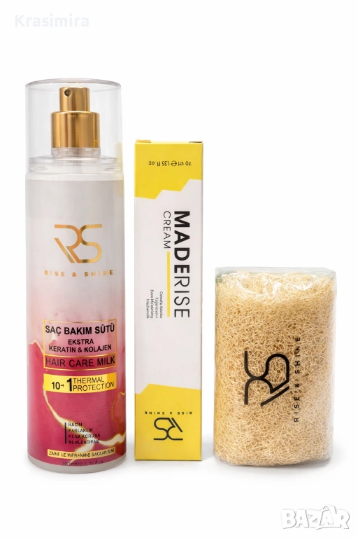 Предлагаме комплект за грижа за косата и тялото Rise & Shine, подходящ както за лична употреба, така и за подарък.