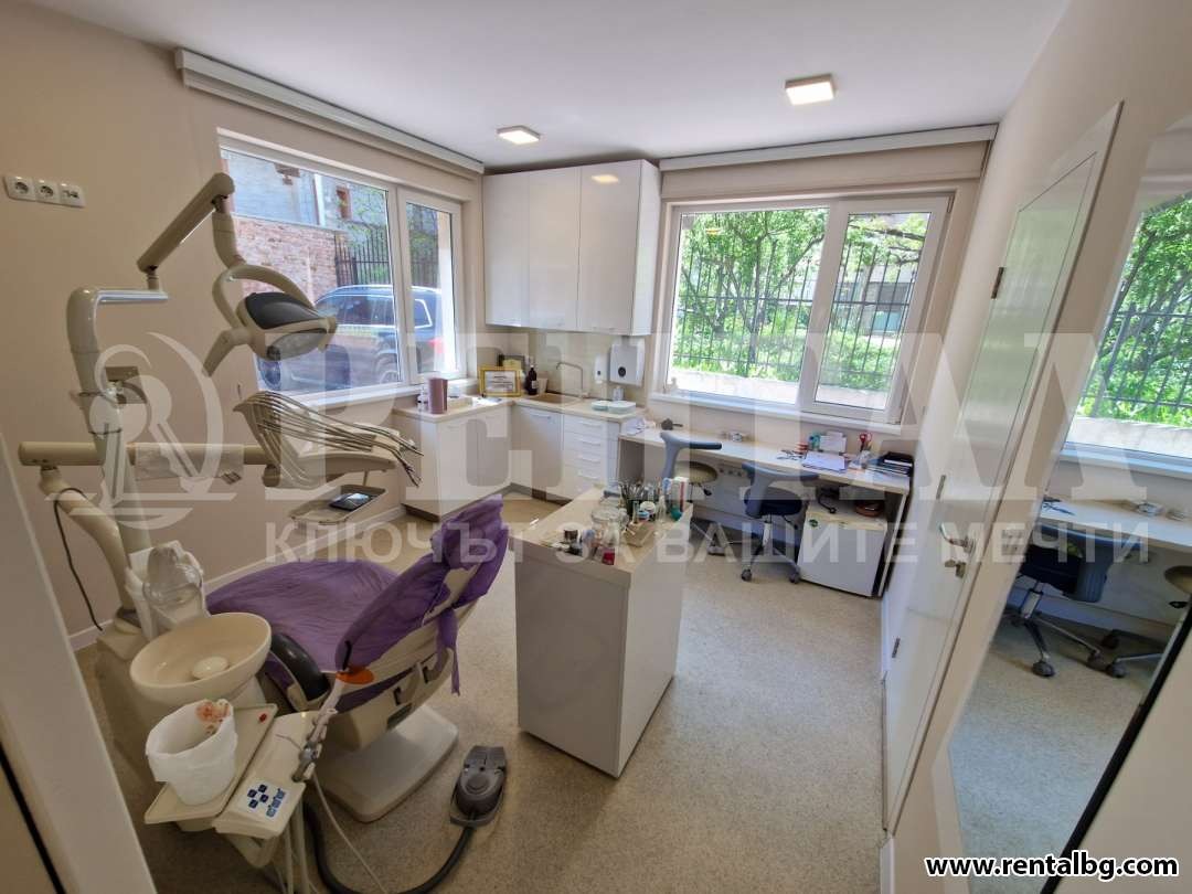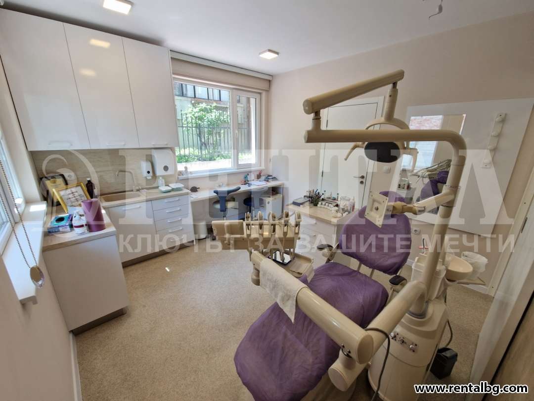 ЕКСКЛУЗИВНО от Агенция Рентал, предлагаме под наем оборудван стоматологичен кабинет с площ 55 кв.м. и с възможност за създаване на лекарски кабинет до него. Кабинетите са с два различни входа. Кабинетът се до Медицинския Университет на много комуниникативно място, изцяло оборудван, окабелен, разполагащ 3 климатик, 2 тоалетни и чакалня. Агенцията разполага с ключ, за вашето удобство. За повече информация и огледи, моля свържете се с нас! Оферта 263892