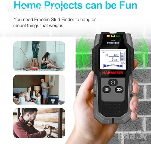 Многофункционален стенен скенер HANMATEK SF2, предназначен за откриване на електрически кабели, дървени греди и метални елементи в стени, подове и тавани. Идеален инструмент при ремонтни дейности, монтаж на рафтове, шкафове, телевизори и други конструкции.