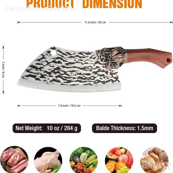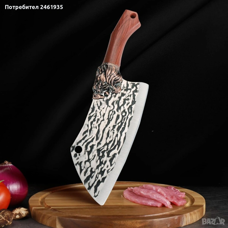 Ръчно кована изработка: имат ръчно ковани остриета с текстура на зърнестата повърхност, която е изкована и нагрявана многократно, за да се създаде компактна и твърда структура от високовъглеродна стомана, която ефективно намалява залепването на храната за по-гладко рязане.
