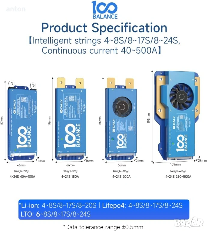 Обявата е за 250А / 8S - 24S , имам и други видове. Bluetooth комуникация и WiFi в комплекта.