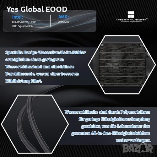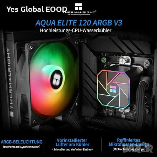 Водно охлаждане Thermalright Aqua Elite 120 V3, създадено за ефективно охлаждане на настолни процесори. Оборудвано с 120 mm PWM вентилатор със S-FDB лагер за тиха и стабилна работа.