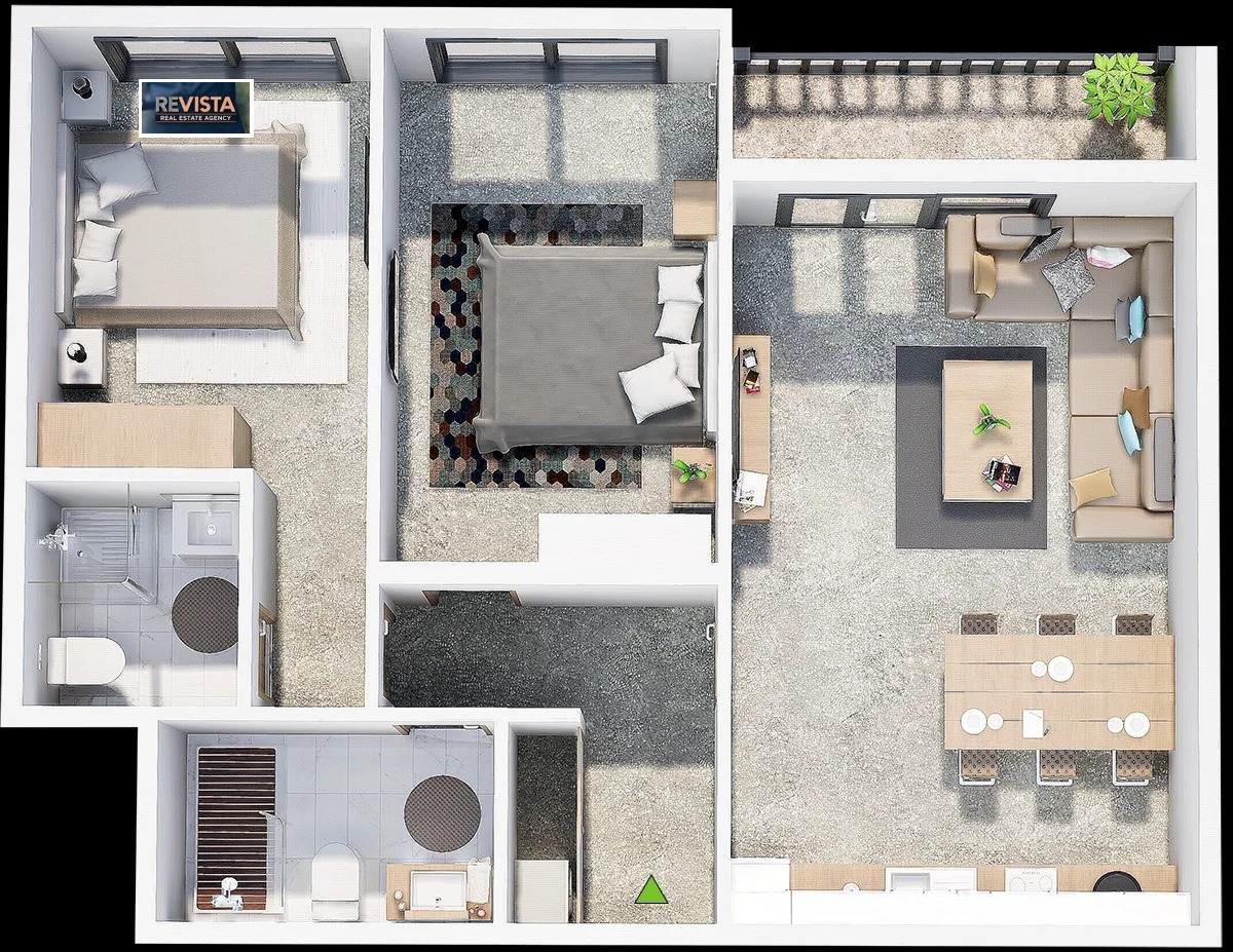 ➡️ Тристаен апартамент, който можем да Ви предложим в комплекса, със следните основни параметри