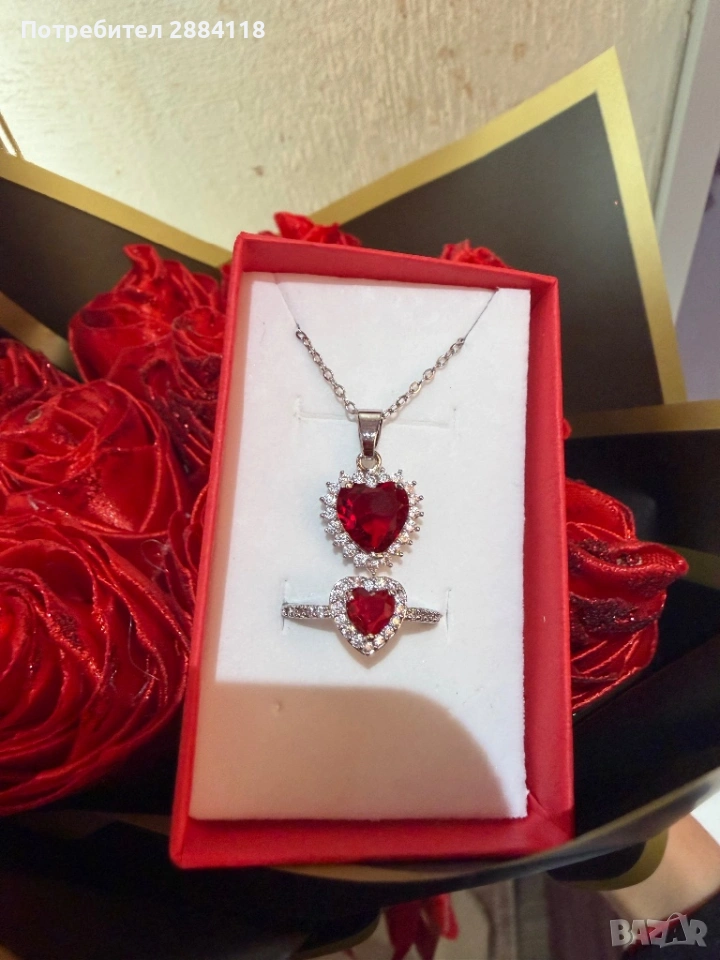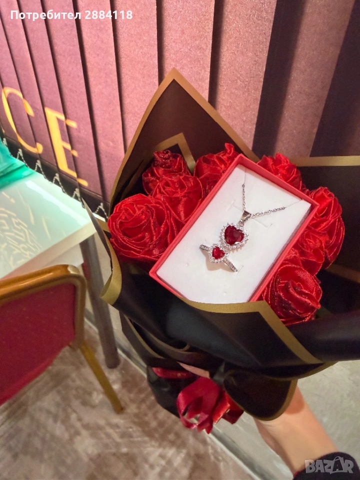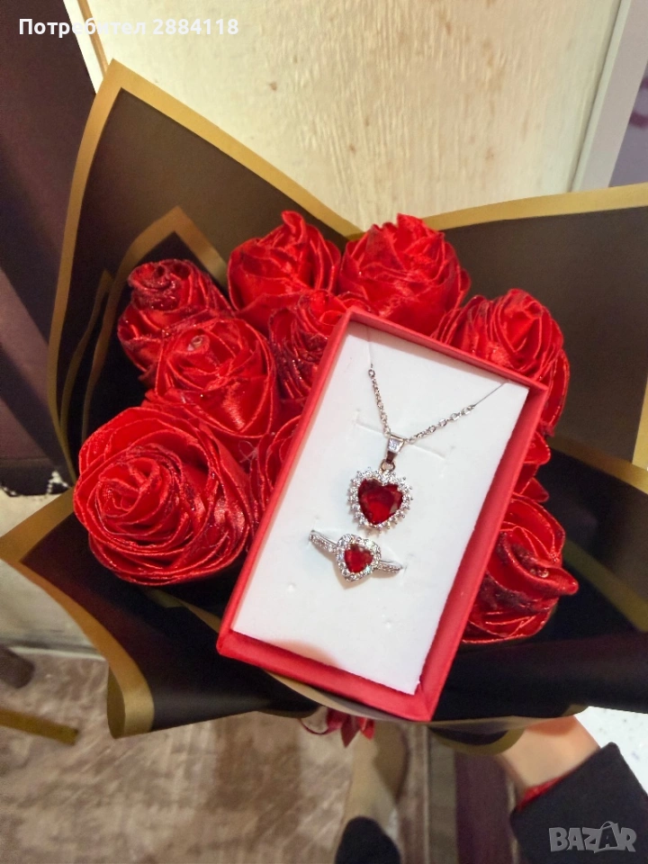 Ръчно изработени рози и колие пръстен + подаръчна кутия → Обява 53634662