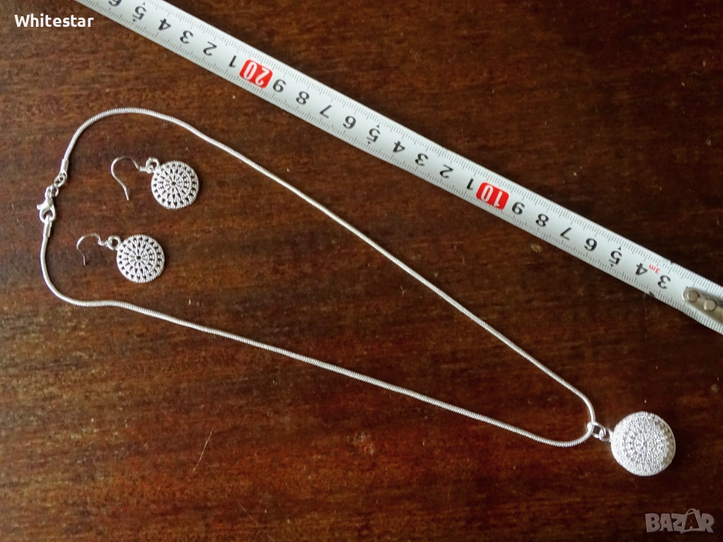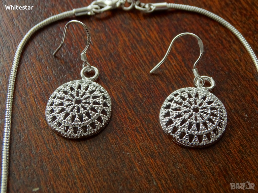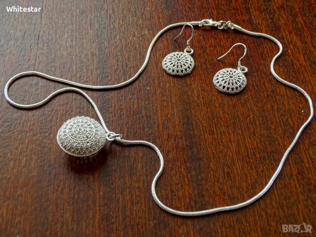 Посребрен дамски комплект - колие и обеци → Обява 53634672