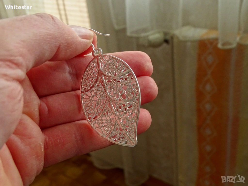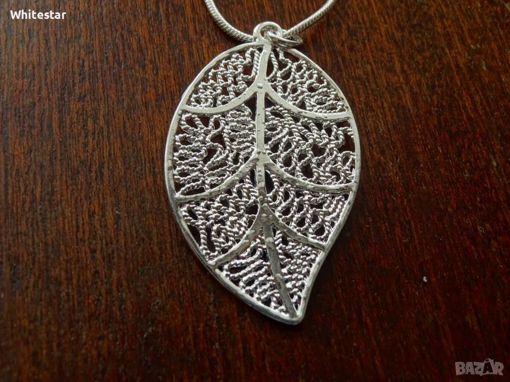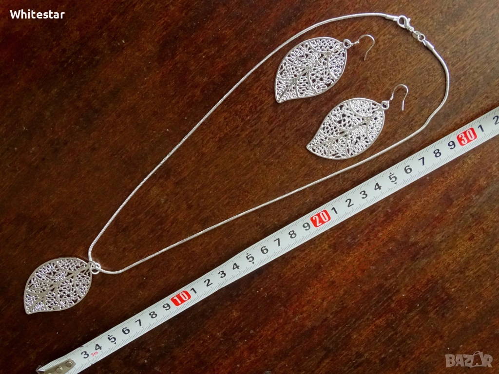 Посребрен дамски комплект, колие и обеци "Листо" → Обява 53634833