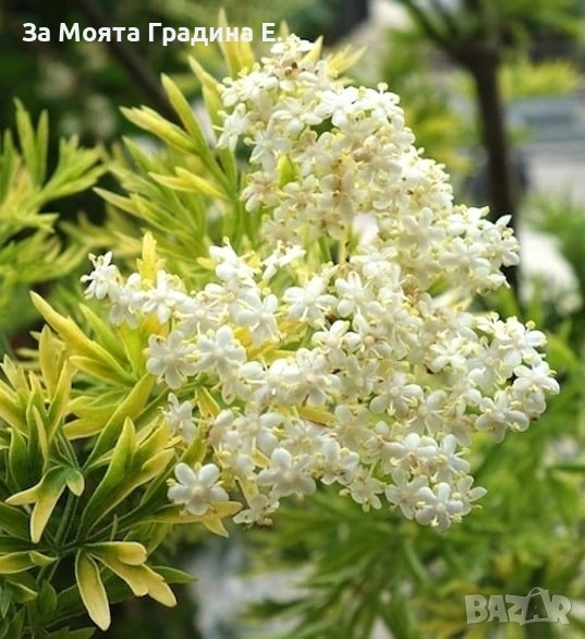 Черен бъз GOLDEN TOWER – ЗЛАТНА КУЛА Цена за 1 растение 11,49€ Sambucus nigra ‘Golden Tower’ е декоративен храст със златисто-зелена листна маса и нежен цъфтеж. Произходът му е от Нидерландия, а заради компактния хабитус и ярката зеленина той е перфектен за озеленяване на тесни пространства, тераси и градски градини. Изключително подходящ за вертикални композиции, фонови засаждания, живи плетове и саксийно отглеждане. Растението е студоустойчиво, бързорастящо и непретенциозно – идеален избор както за начинаещи, така и за опитни градинари. Максимална височина 200-300см През юни храстът цъфти с едри, плоски, фалшиви сенници с диаметър от 10 до 20 см, съставени от малки бели цветчета с 5 венчелистчета. Цветовете са леко ароматни и се носят от червеникави дръжки, придавайки допълнителен декоративен ефект. Този цъфтеж привлича пчели, пеперуди и други полезни насекоми. Растенията са в контейнери, което позволява засаждането им да се извършва почти целогодишно. Много от растенията променят вида си през периодите на своята вегетация, но тук в сайта със снимки се представят в най-атрактивния им вид. Повечето снимки в сайта ни покзват как ще изглеждат растенията след определен период и положени необходимите грижи.Моля разгледайте и другите ни растения в сайта. Благодарим че избрахте нас 😊 Тел. 0877977519