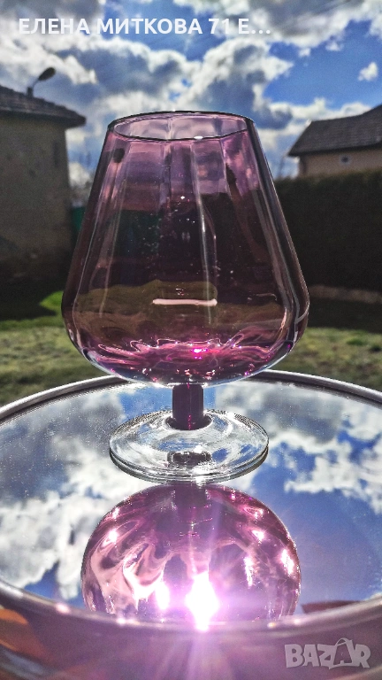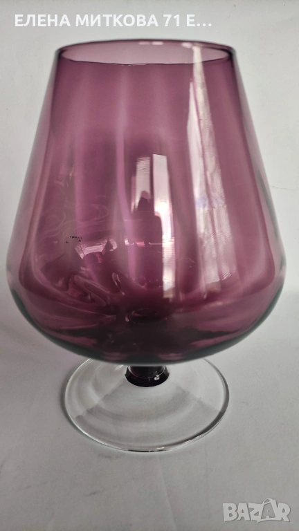 ***Номер 4 -голяма чаша в лилав цвят с прозрачно столче и основа-с релеф-вместимост 900 мл-височина 15.5 см-диаметър на отвора 7 см-тегло 250 гр