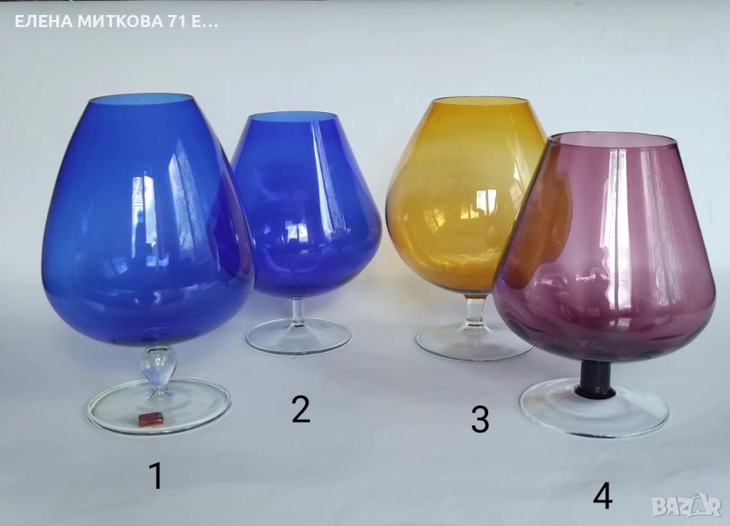 За ценителите на цветното ръчно издухано стъкло днес ви представям 4 красиви екземпляра в отлично състояние