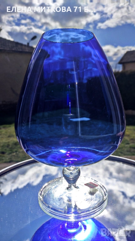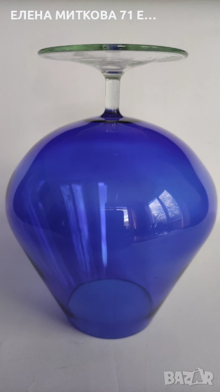 Прекрасна тънкостенна чаша от ръчно издухано кобалтово стъкло