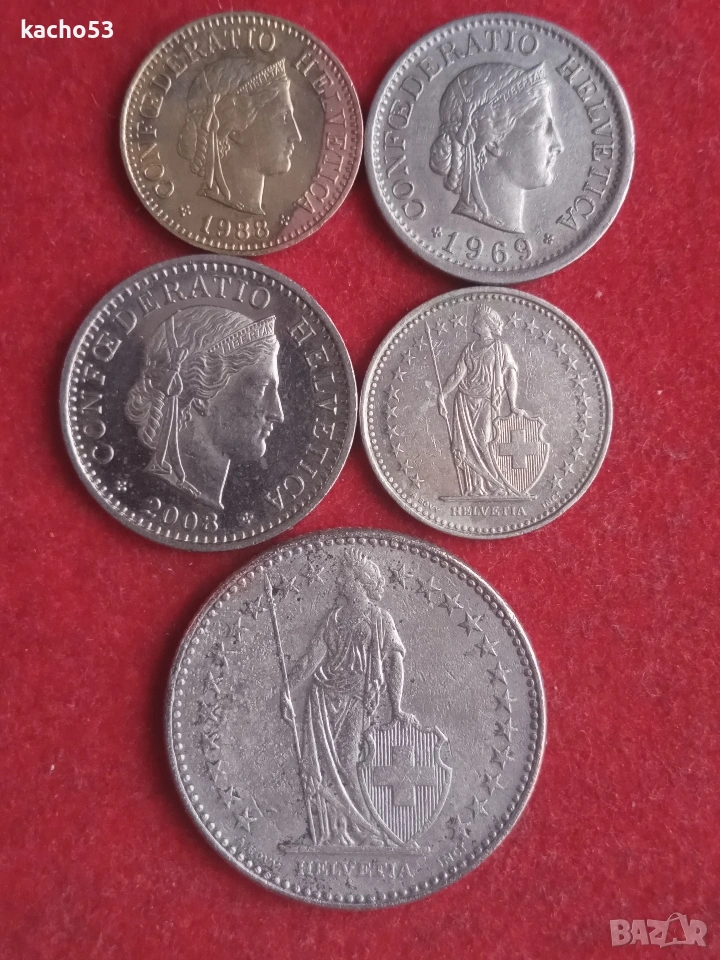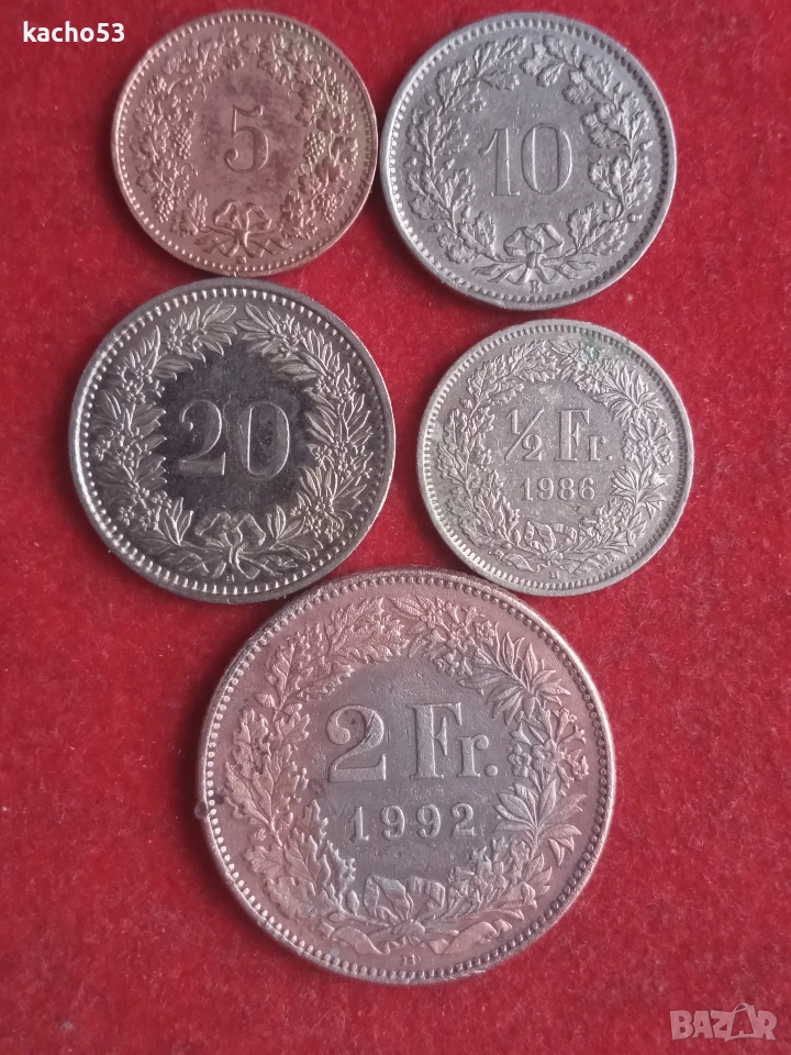 Лот монети Швейцария.- 5 броя → Обява 53635318
