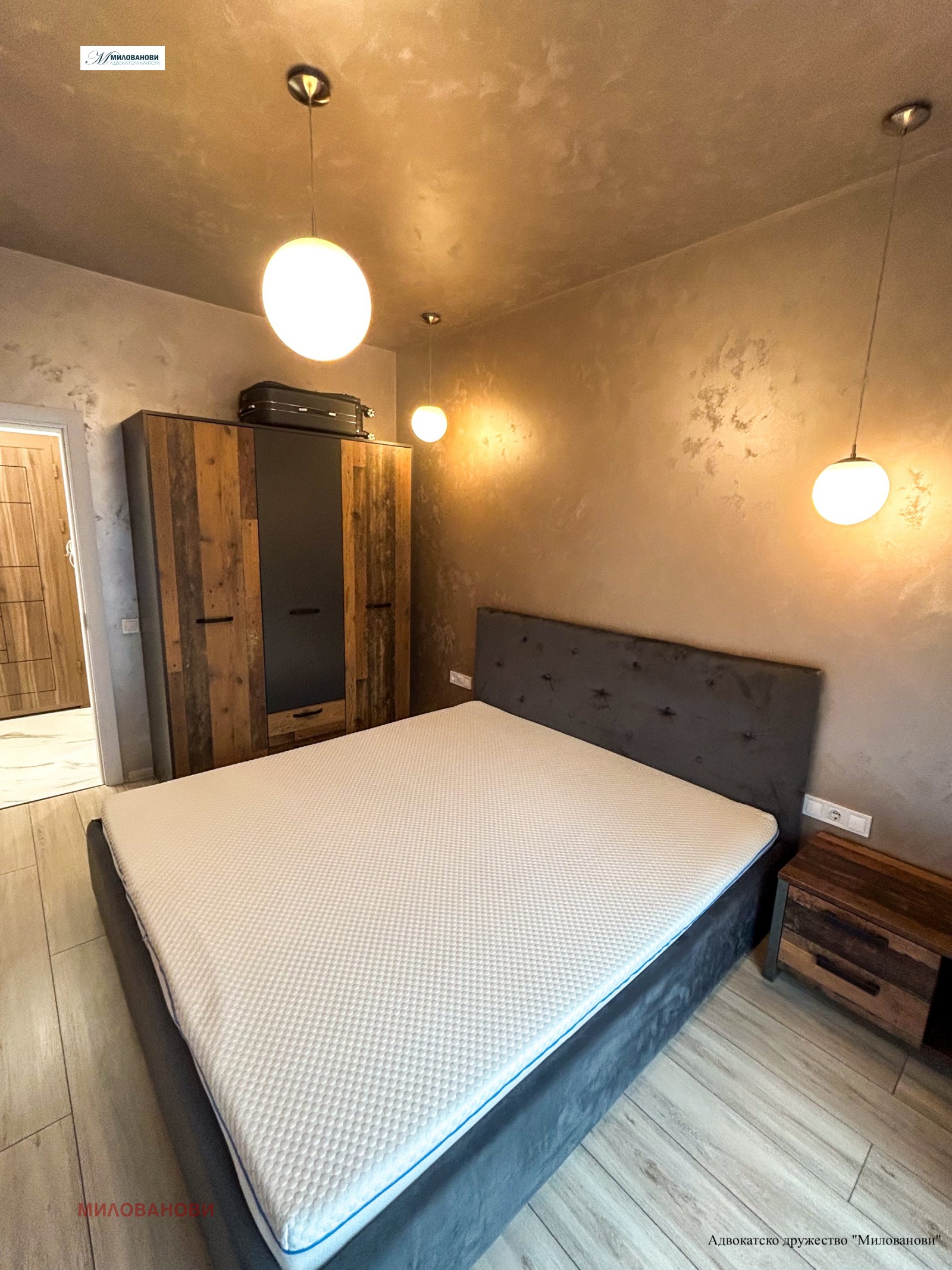 Разпределението на помещенията е както следва: дневна с кухня, спалня с тераса с изглед към София, антре и баня.