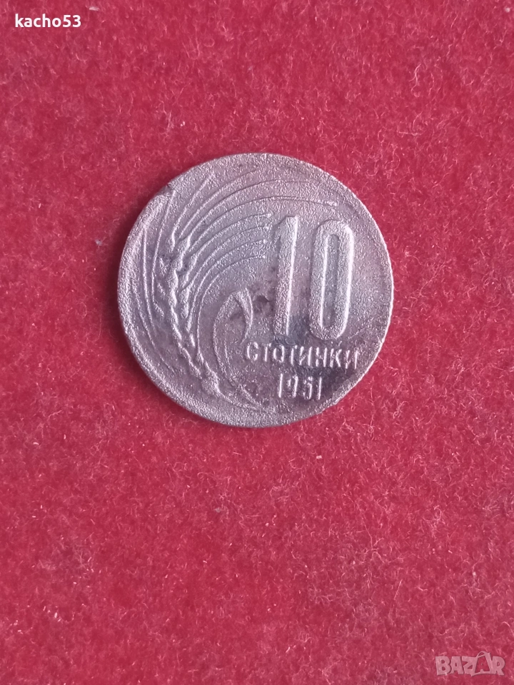 10 стотинки 1951 г. България., снимка 1 - Нумизматика и бонистика - 53635582 10 стотинки 1951 г. България., снимка 2 - Нумизматика и бонистика - 53635582 1/2