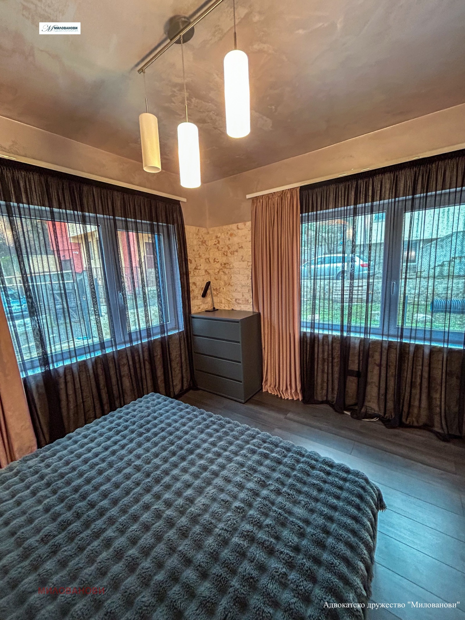 Цялата сграда е изцяло обновена, като същата представлява масивен строеж (двойна тухла), с 10 см. топлоизолация и изцяло нови фасада и покрив, за които ще бъде предоставена гаранция. Дограмата е най-висок клас, с троен стъклопакет, която е уникално изпълнение за България. Сградата е измазана отвътре с варова мазилка и са използвани изцяло естествени материали. Апартаментът е завършен до ключ, като има подови настилки, мазилки на стените и е напълно обзаведен с висок клас мебели и електроуреди.