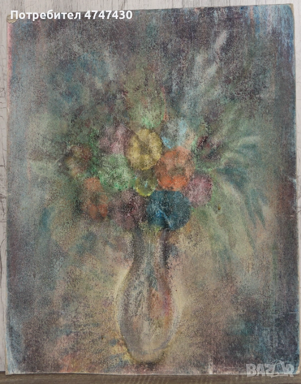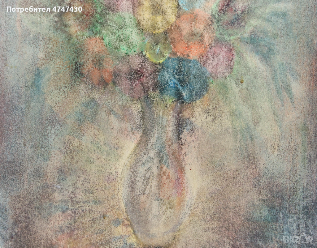 Стойно Добрев пастел натюрморт със цветя → Обява 53635731