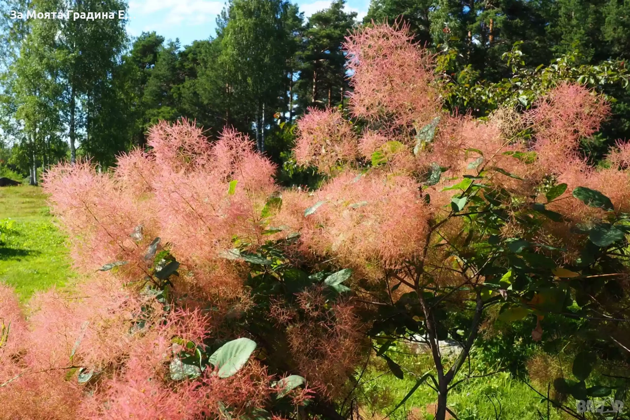 Смрадлика – Зелена Cotinus coggygria (Rhus cotinus) Размер около 10см за 7 € Описание: Смрадликата е естествено разпространена у нас в диво състояние. Представлява сравнително едър храст. Листата са заоблени, покрити с восъчен налеп. Цветовете са дребни, събрани в розово-лилави едри и пухкави съцветия-метлици, които са доста атрактивни. Плодчетата са много дребни, голи, черни на цвят. Напълно зимоустойчиво за България растение. Цени се като противоерозионно в горското стопанство, като медицинско растение с широка употреба и като декоративно растение, особено създадените листно-декоративни негови сортове. Декоративност: Декоративна листна маса и цъфтеж, красиво есенно багрене. Цъфтеж: Пролетено-летен. Съцветията са едри, розово-лилави метлици, отделните цветчета са дребни, жълти, почти незабележими. Дръжките на цветчетата са снабдени с дълги власинки, което придава на съцветията пухкав вид. Отглеждане: На слънчеви места до лека полусянка. Непретенциозно към почвено плодородие и реакция на почвата. Изисква добър дренаж на почвата, много е сухоустойчива. Позвлява стригане и оформяне на храста. Използване: Като солитер, в композиции с други листно-декоративни растения в дървесно-храстови групи. Красиво растение, което намира широко приложение в озеленяването. Растенията са в контейнери, което позволява засаждането им да се извършва почти целогодишно. Много от растенията променят вида си през периодите на своята вегетация, но тук в сайта със снимки се представят в най-атрактивния им вид. Повечето снимки в сайта ни покзват как ще изглеждат растенията след определен период и положени необходимите грижи. Моля разгледайте и другите ни растения в сайта. Благодарим че избрахте нас 😊 Тел. 0877977519