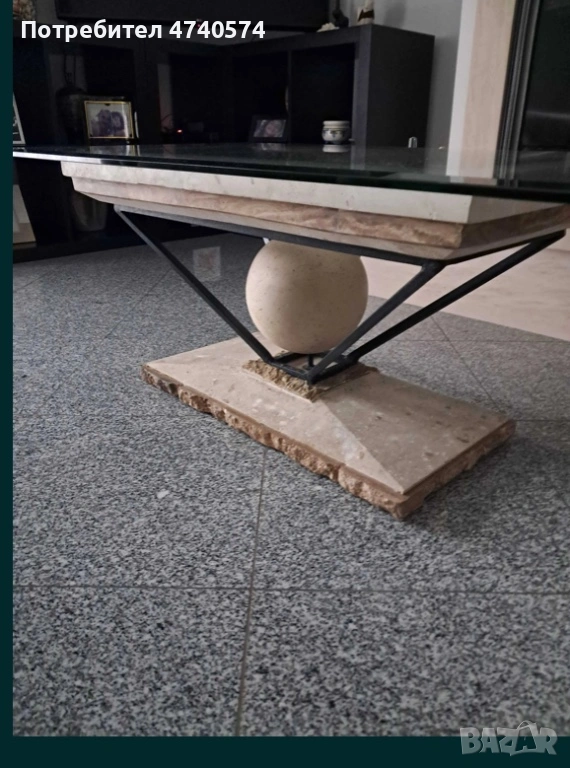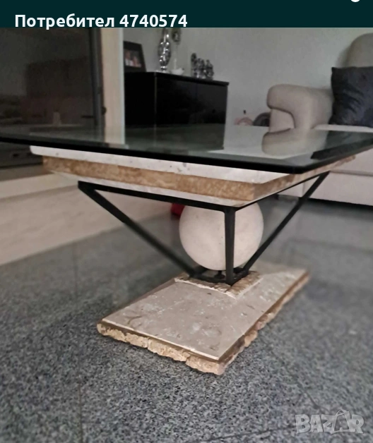 Практичен и стилен Дизайнерски кафе масичка изработена от камък , желязо и плод от стъкло. Подходяща за модерен интериор , ще добави елегантен акцент към всекидневната ви .