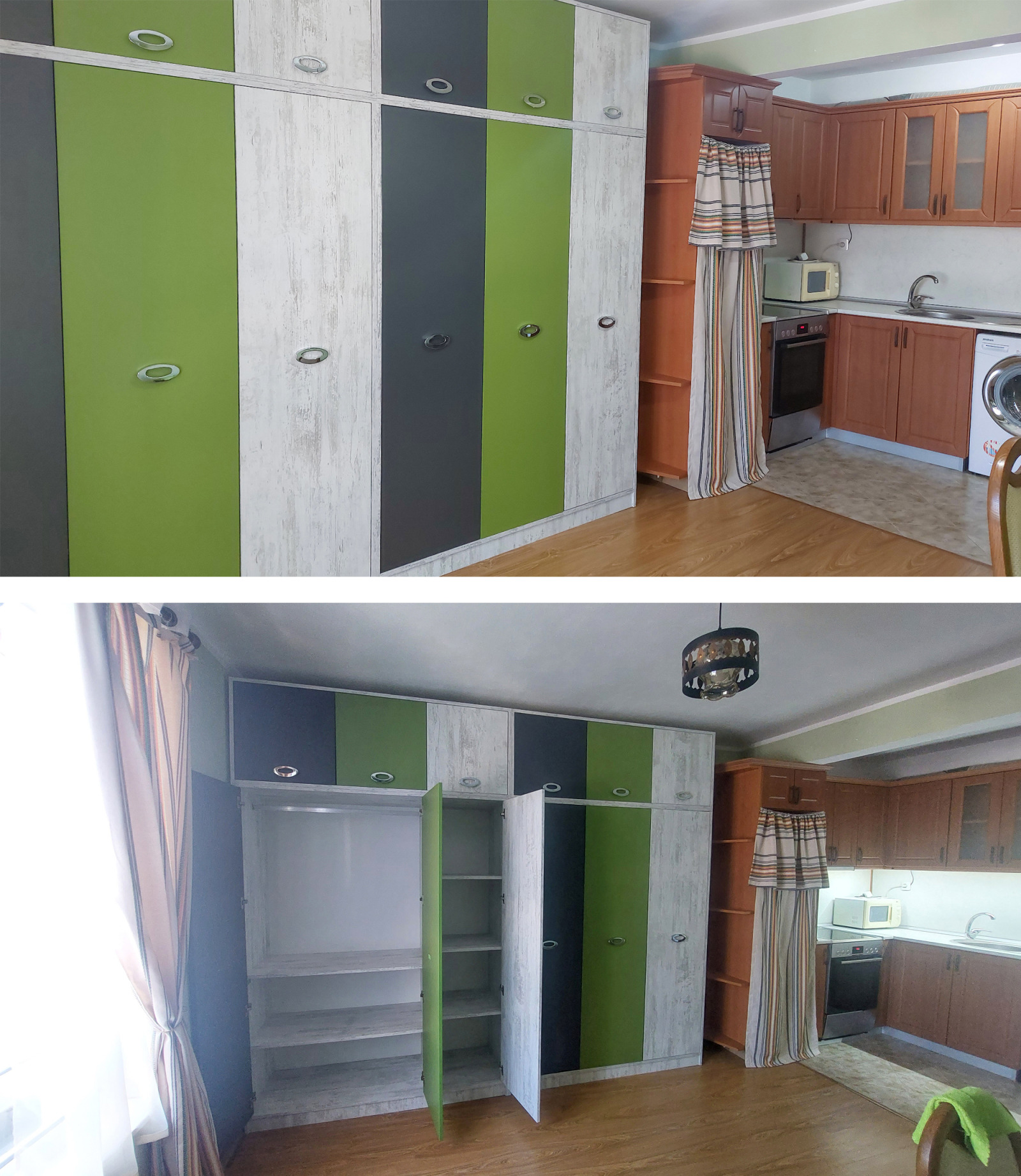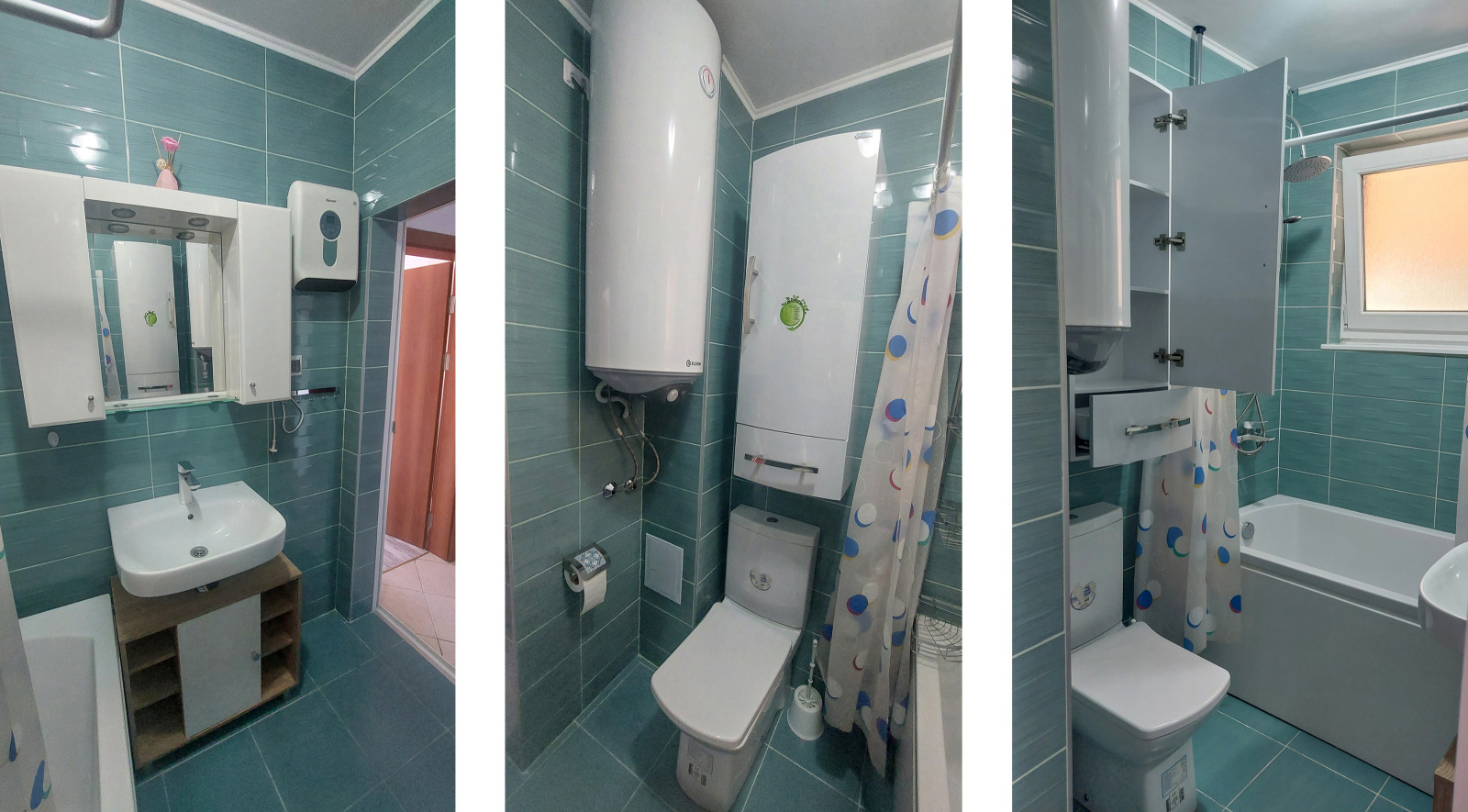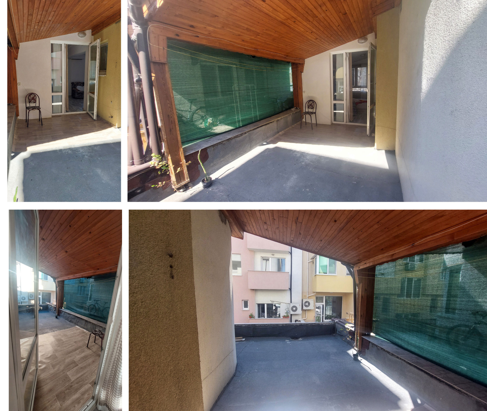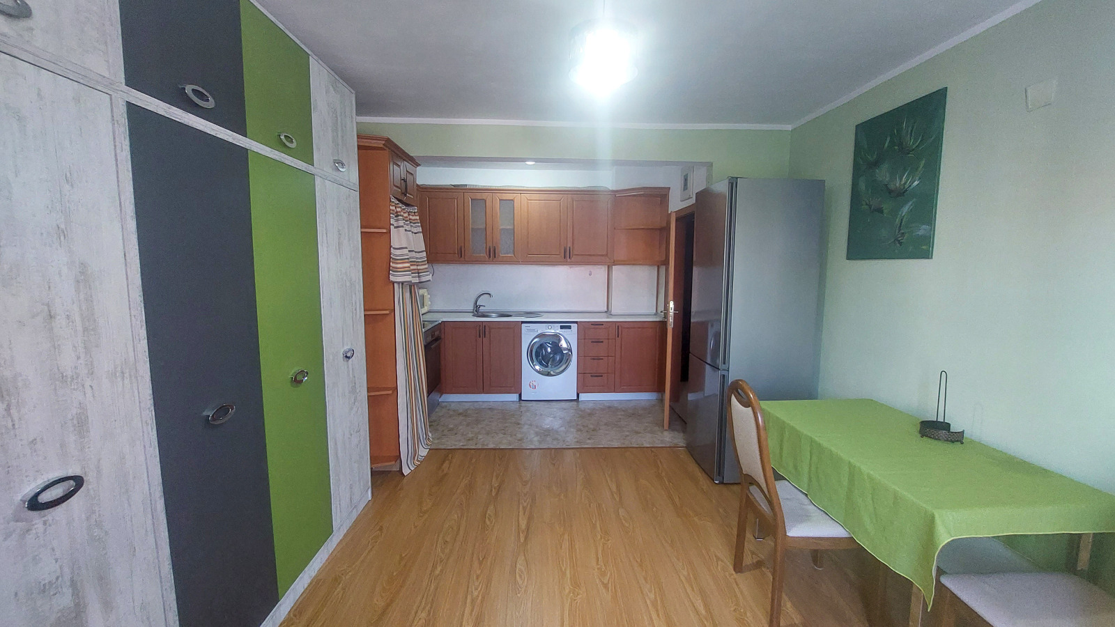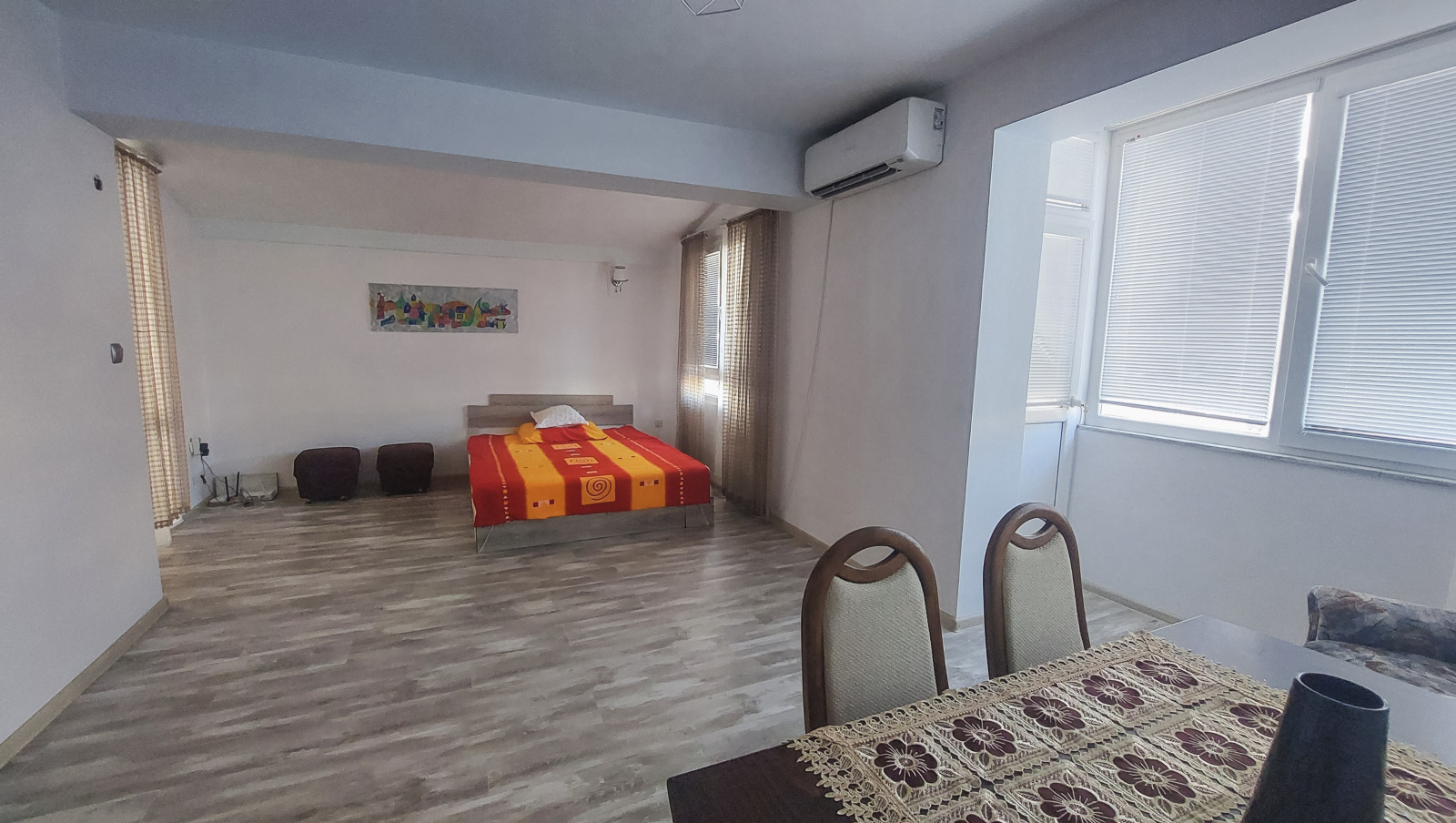 Състои се от разширен хол със спалня + голяма тераса и балкон, просторна кухня с трапезария, баня с тоалетна и антре. Апартаментът е изцяло обзаведен - освежена баня след цялостен ремонт: вана, удобни шкафове, отопление; хол и спалня с климатик, голямо легло в спалнята, секция и диван, маса със столове и фотьойл; кухнята: има LED осветление над плота, фурна с аспиратор, хладилник, микровълнова, маса и столове, голям гардероб и етажерки; коридор.