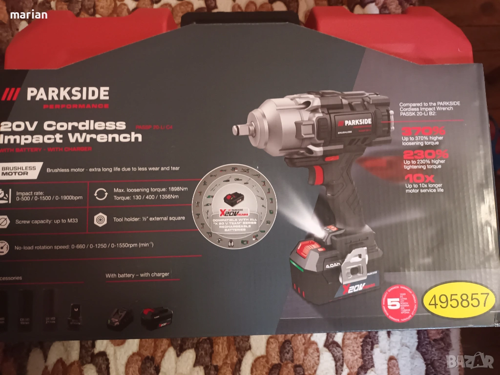 Ударен гайковерт Парксайд Parkside , снимка 1 - Други инструменти - 53636101 Ударен гайковерт Парксайд Parkside , снимка 2 - Други инструменти - 53636101 Ударен гайковерт Парксайд Parkside , снимка 3 - Други инструменти - 53636101 Ударен гайковерт Парксайд Parkside , снимка 4 - Други инструменти - 53636101 1/4