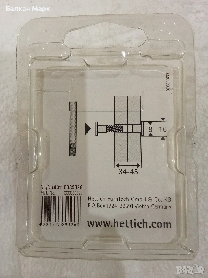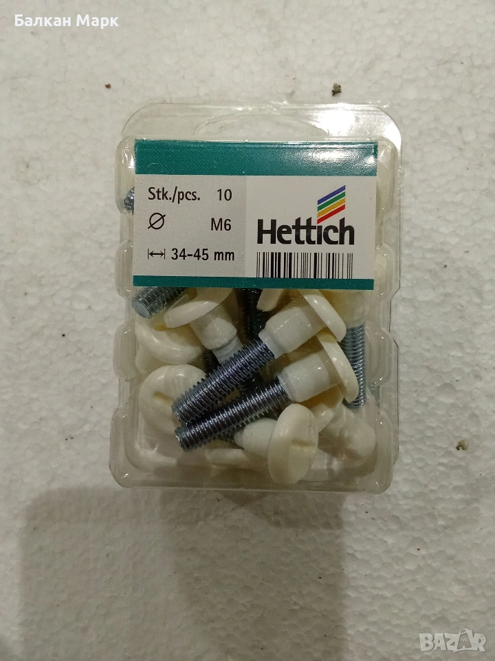 Продавам висококачествени мебелни сглобки (свързващи винтове) на немската марка Hettich. Продуктът е част от разнообразна палетирана стока, директен внос от Германия. Изключително здрави и надеждни, идеални за свързване на гардероби, шкафове и други корпусни мебели.