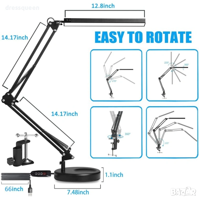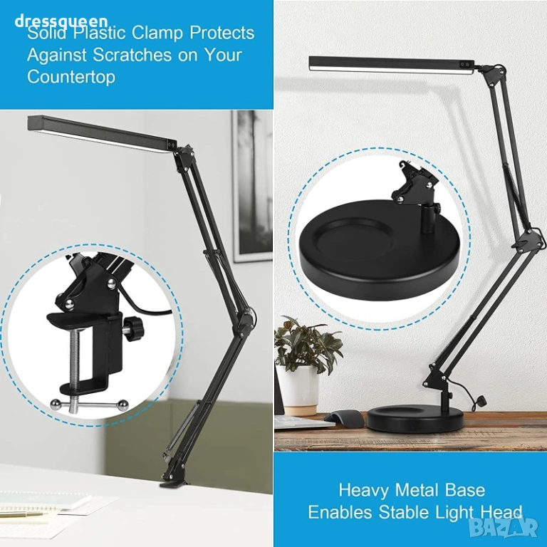 Тази практична LED настолна лампа съчетава удобството на стабилна основа с гъвкавостта на метална щипка – избери как да я използваш според нуждите си! С прецизен дизайн и възможност за монтаж върху плотове до 5 см, тя е перфектна за дома, офиса или ученическото бюро.