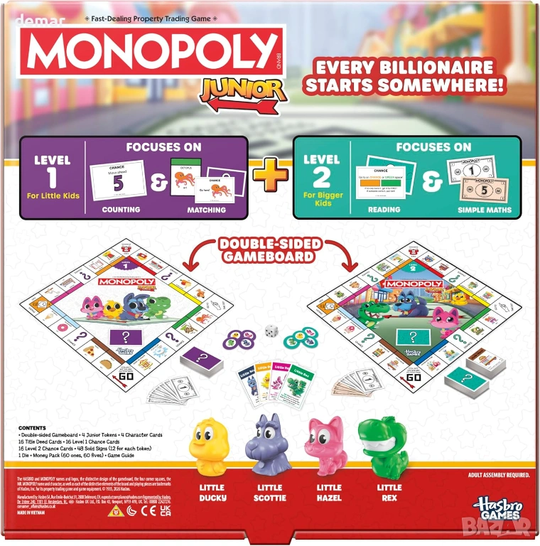 Настолна игра „Монополи“ за деца (издание 2026 г.), 2 в 1 - английски