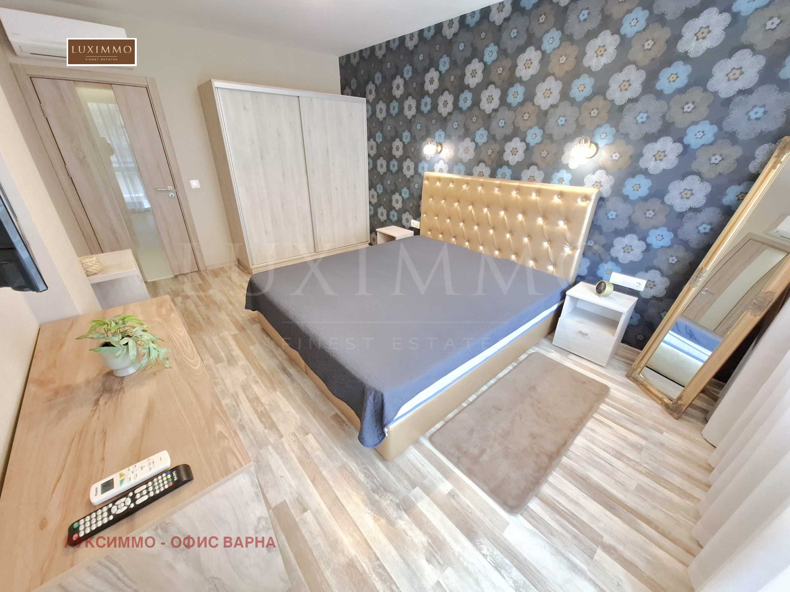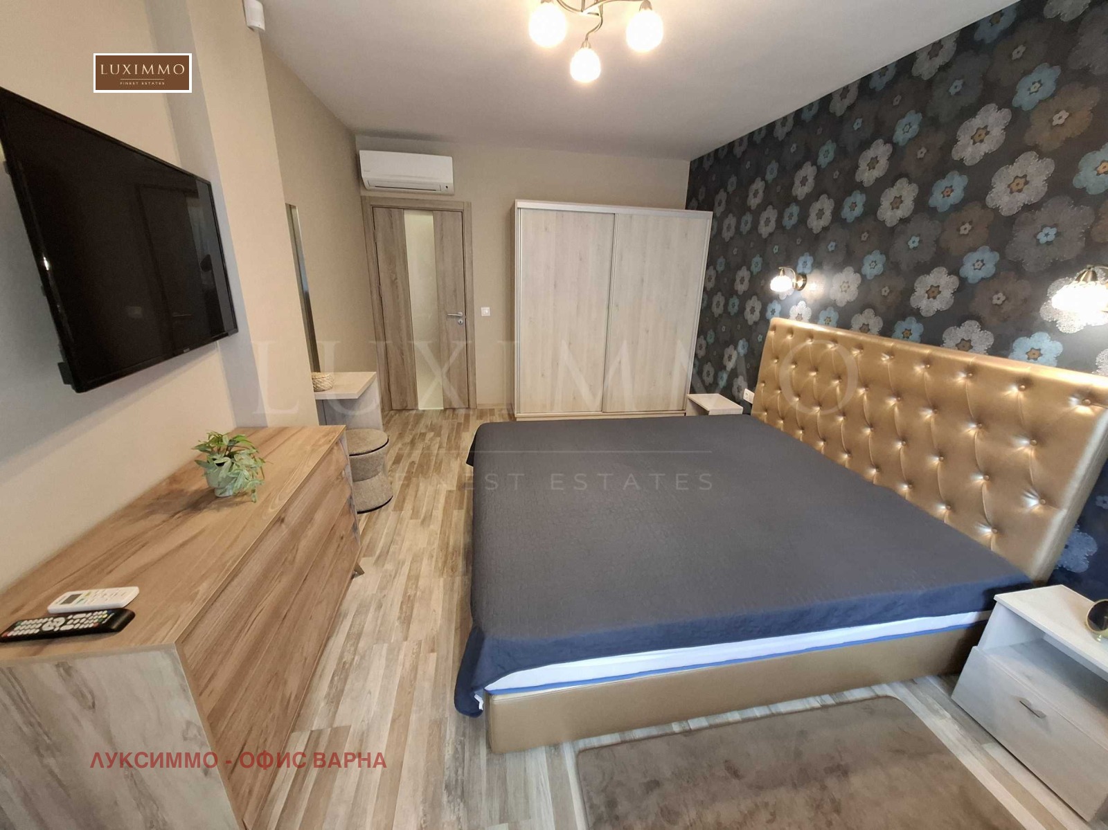 Апартаментът е модерно обзаведен и напълно оборудван с висок клас уреди - вградена фурна и плот с котлони, хладилник, бойлер, климатици и др.