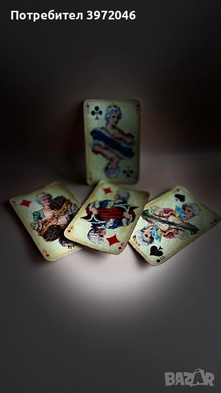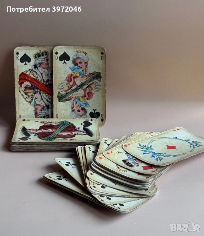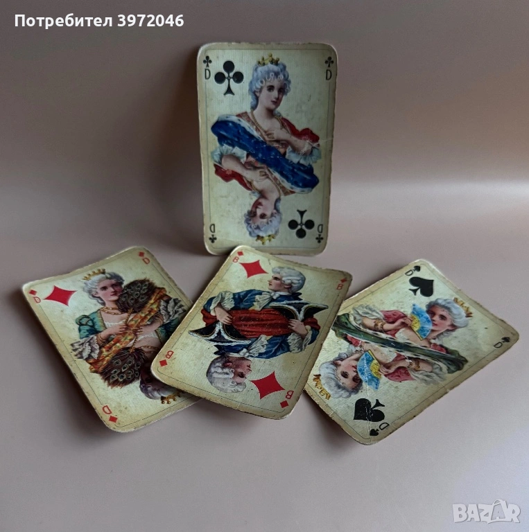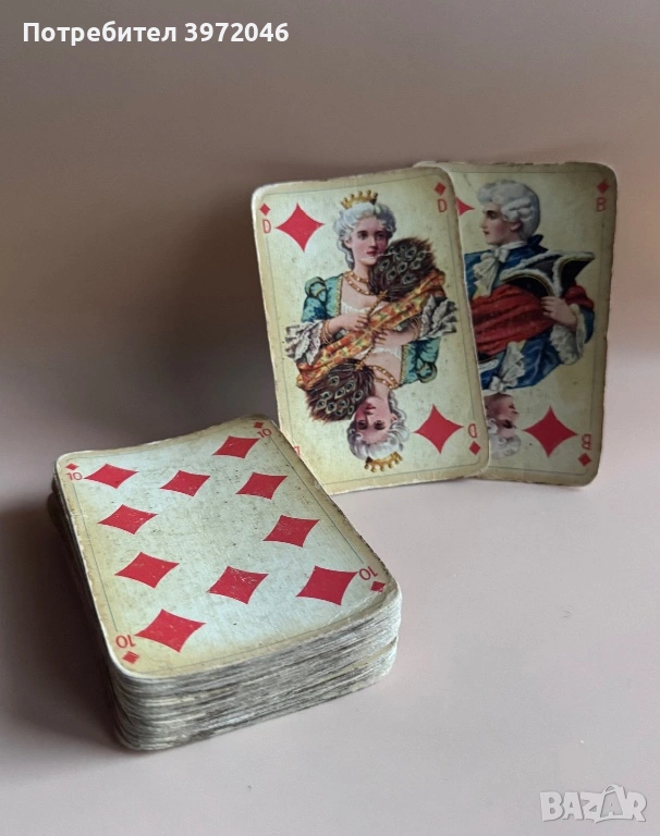 Тестето представлява автентичен ретро предмет на възраст приблизително 50–60 години – подходящо както за колекция, така и като уникален декоративен или тематичен подарък за ценители на историята, изкуството и класическите игрални карти.