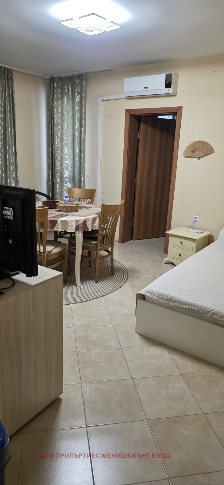 жилището е със следното разпределение: Спалня -гардероб,шкафове,климатик,всекидневна с кухненска част кухнята е напълно оборудвана ,хладилник съдомиялна, климатик,тераса с гледка към морето и странджа планина , баня/тоалетна.студиото също е обзаведено.