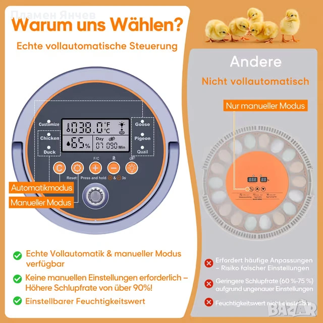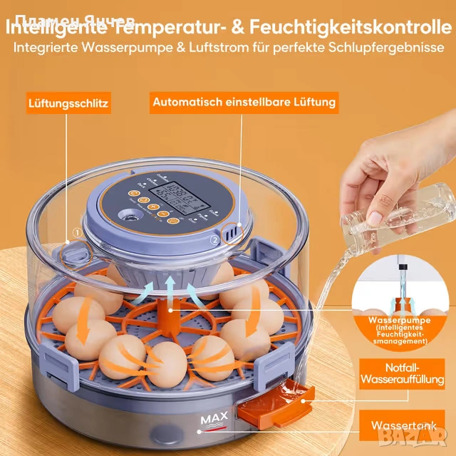 Автоматичен инкубатор за 12 яйца с автоматично завъртане → Обява 53636928