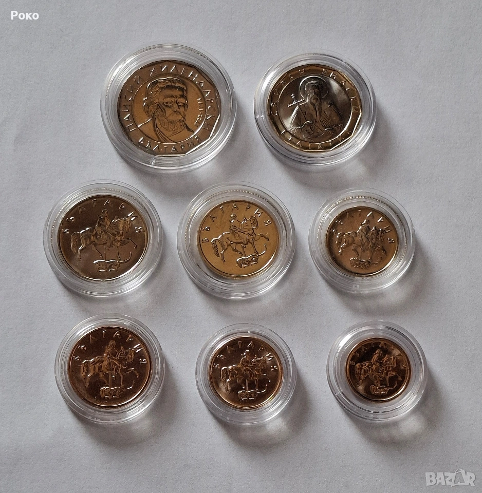 Нови Монети в Защитни капсули (UNC) 1,2лв 50,20,10,5,2,1стотинка. → Обява 53637056
