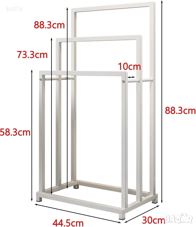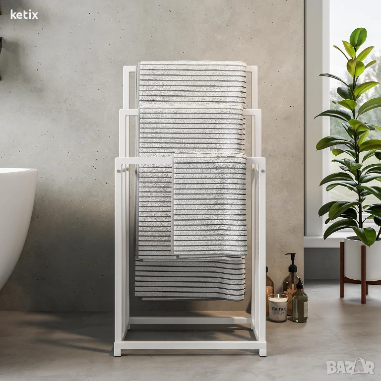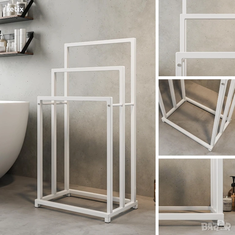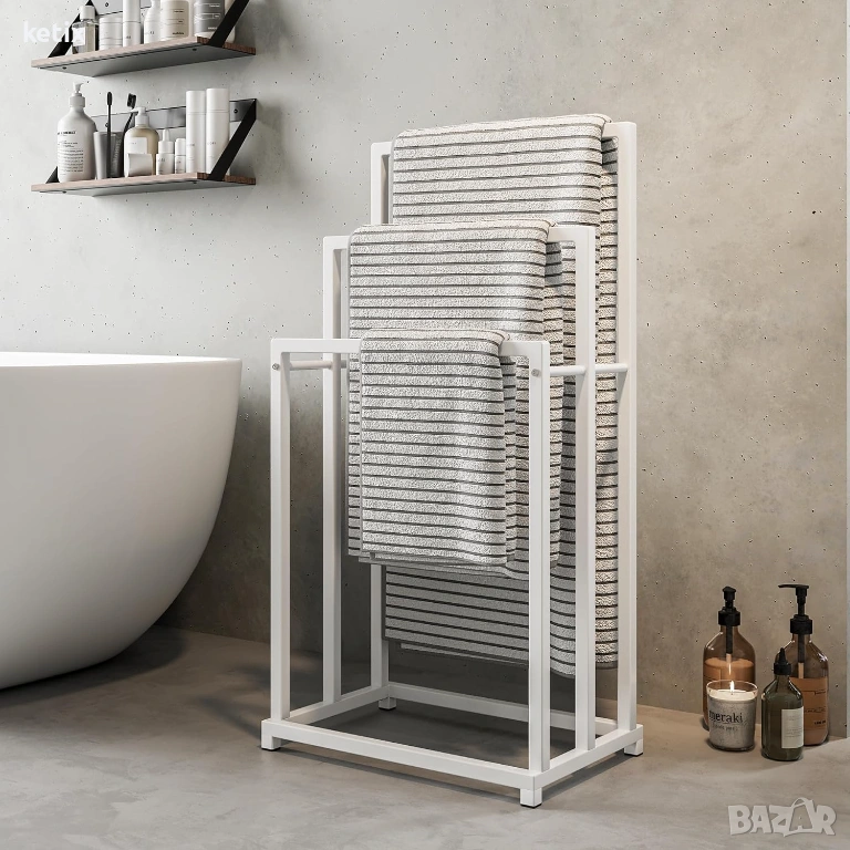 Свободностоящи поставки за кърпи: поставката за кърпи стои свободно - може да се постави във всеки ъгъл на банята или кухненска ниша - В x Ш x Д: приблизително 88,3 x 44,5 x 30 см, с 3-релсова поставка за кърпи, идеална е за цялото семейство или за атрактивен начин за съхранение на кърпи.