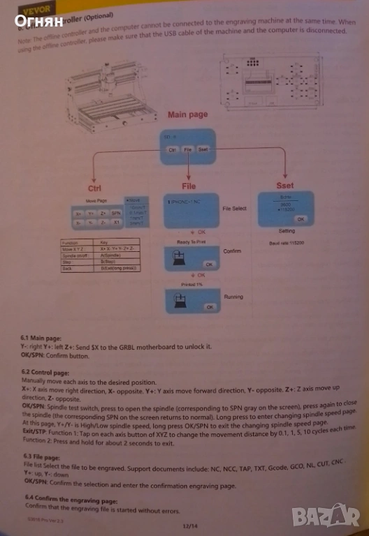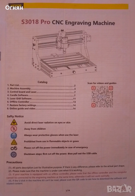 VEVOR, VG-S3018 Pro, Гравираща машина CNC 3018, може да работи и с лазерен модул, има и офлайн контролер – може да работи без РС, само с TF карта