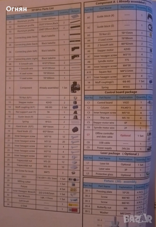 CNC 3018 рутерна машина: CNC 3018 PRO е подобрена версия на 3018 CNC. Предоставя се подробно ръководство за потребителя, инструкции за сглобяване за ваше удобство. Можете да се насладите на забавлението от гравирането на пластмаси, мек алуминий, акрил, PVC, PCB и др. Този продукт не съдържа лазерна глава. Тя може да бъде закупена допълнително.