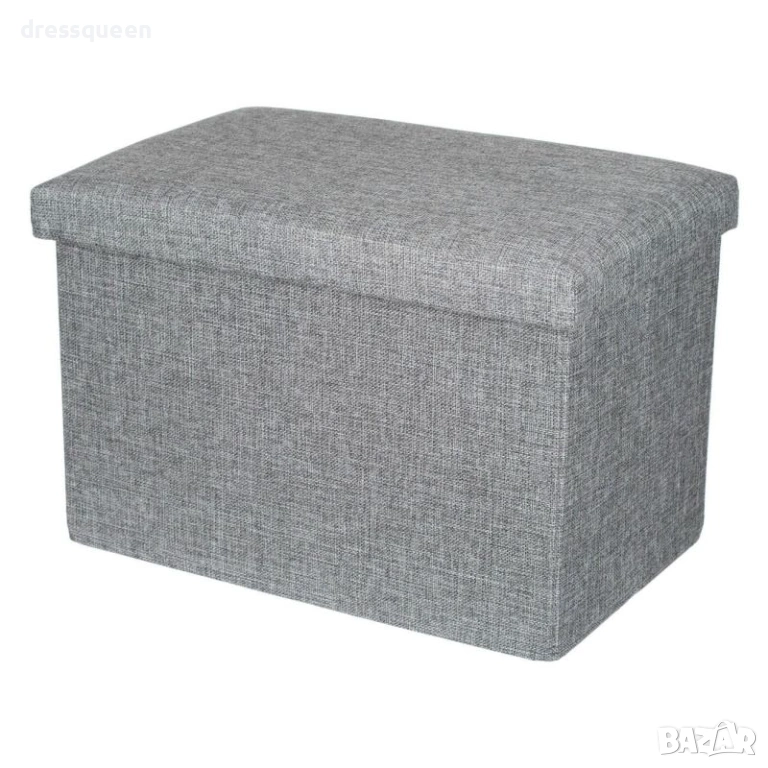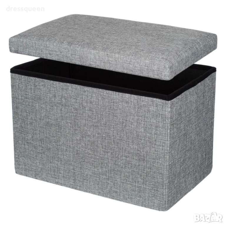 Като сгъваема табуретка ракла, тя предлага бързо решение за скриване на хаоса в стаята. Капакът е подплатен с мека пяна за максимален комфорт, а вътрешността е облицована с тъмен текстил за чист и завършен вид. Независимо дали я използвате в спалнята за съхранение на дрехи или в хола като подложка за крака, тази сива табуретка ще се превърне в любимия Ви помощник у дома.