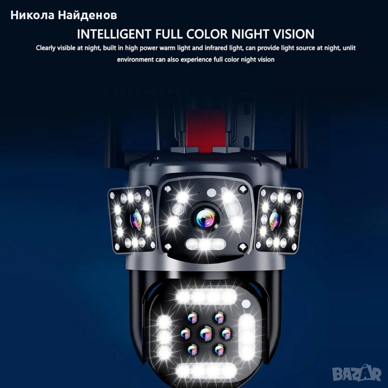 Смарт охранителна камера с три обектива, осигуряваща много по-широко покритие и максимална детайлност. Поддръжка на V380 Pro, автоматично нощно виждане, детекция на движение и завъртане Pan/Tilt за пълен контрол през телефона. Работи на 220V, подходяща за домове, входове, дворове и складове. Висока резолюция, стабилна връзка и надеждна 24/7 работа.