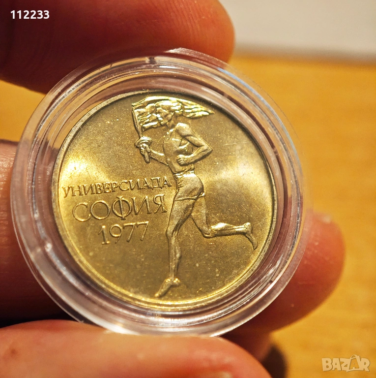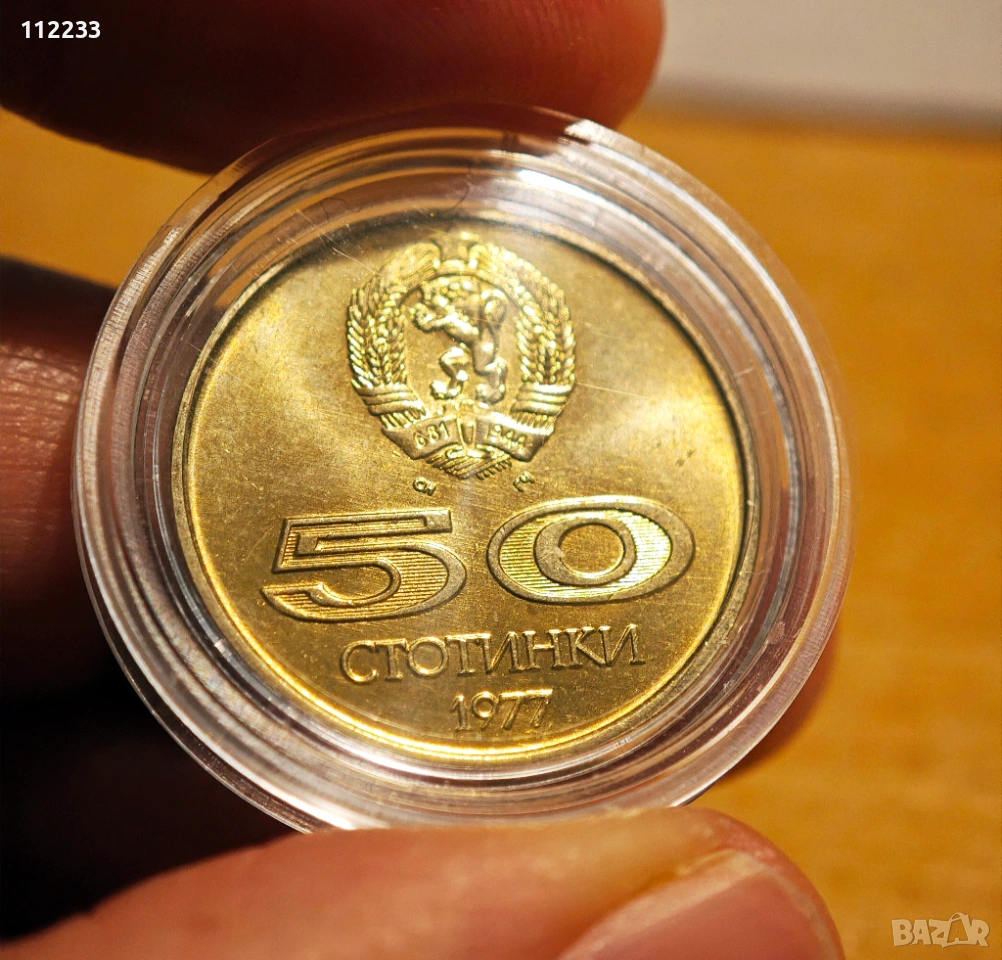 50 стотинки 1977 година. Юбилейна монета. Нова ,нециркулирала. Придобила странен жълт цвят.