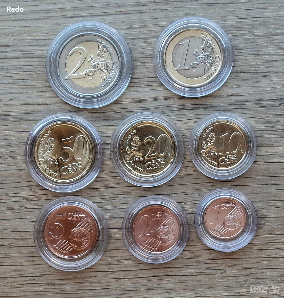Лот от Нови /UNC/ Монети в Защитни Капсули България 1,2лв 50,20,10,5,2,1ст И Евро Монети 1,2€ 50,20,10,5,2,1 Цента. Цената е 30€ за всичките.