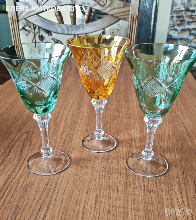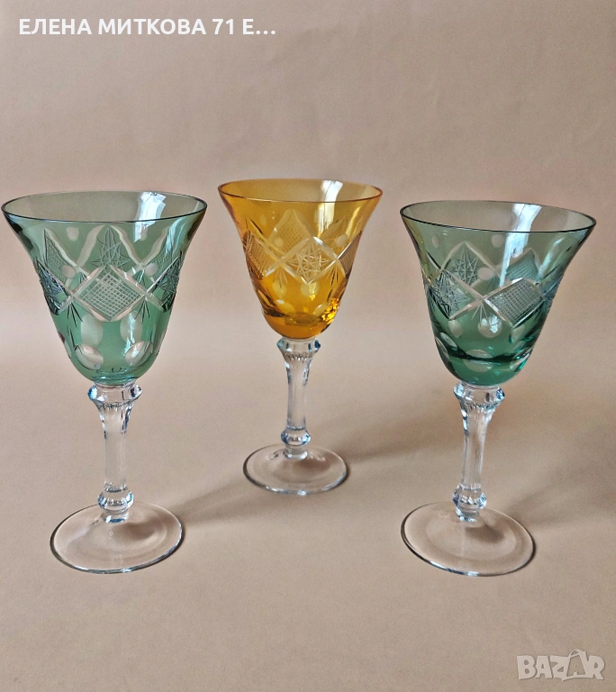 Три елегантни чаши за вино от цветен кристал