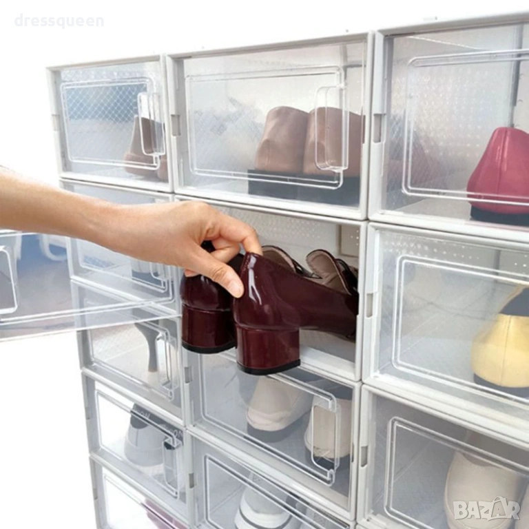 Подредете Вашата нова прозрачна пластмасова кутия за съхранение на обувки самостоятелно или я комбинирайте с други модули.