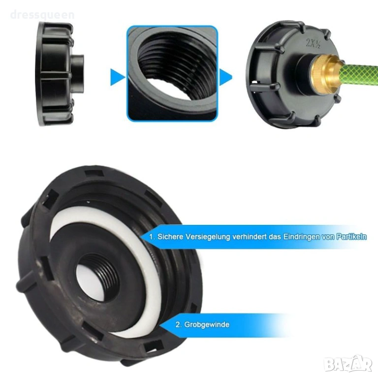 Свържете лесно Вашия кран с капачка-преходник за бидон 1000 л S60x6 към 3/4"