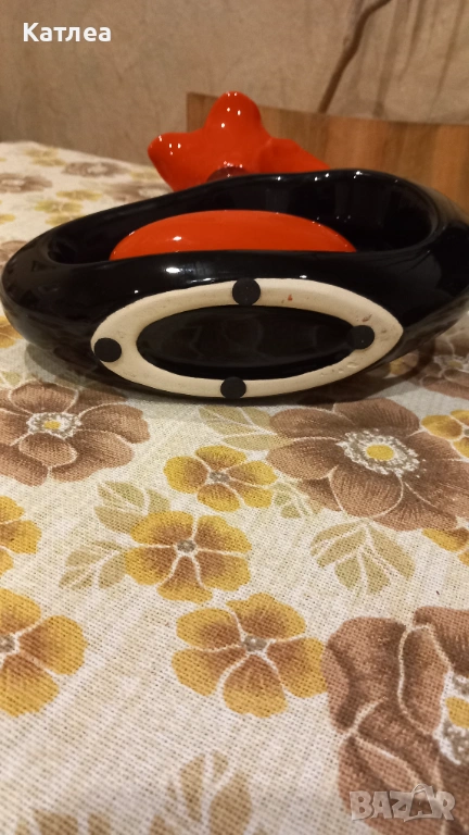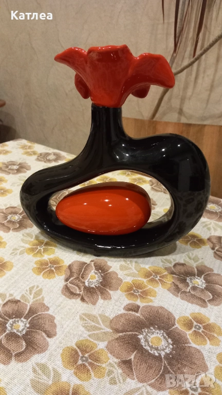 Керамична ваза с височина 22 см. с черен и червен цвят. Отлично състояние без пукнатини и драскотини