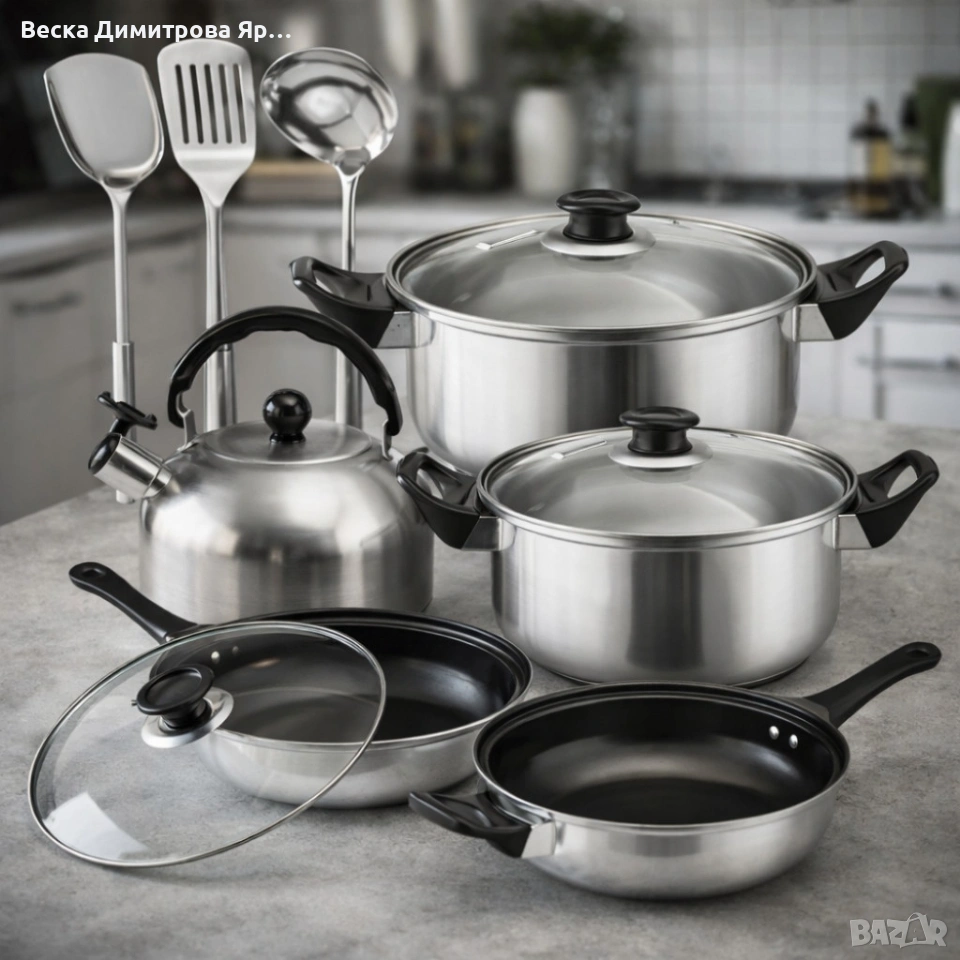 Комплект тенджери и аксесоари от 11 части - издръжливи и устойчиви