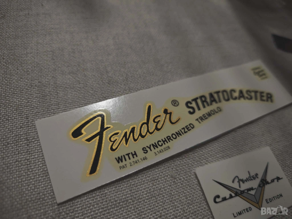 Ваденки Fender Stratocaster 1968/71 (CBS 70's) Custom Shop,естествено with Synchonized Tremolo логото и Original Contour Body Patented