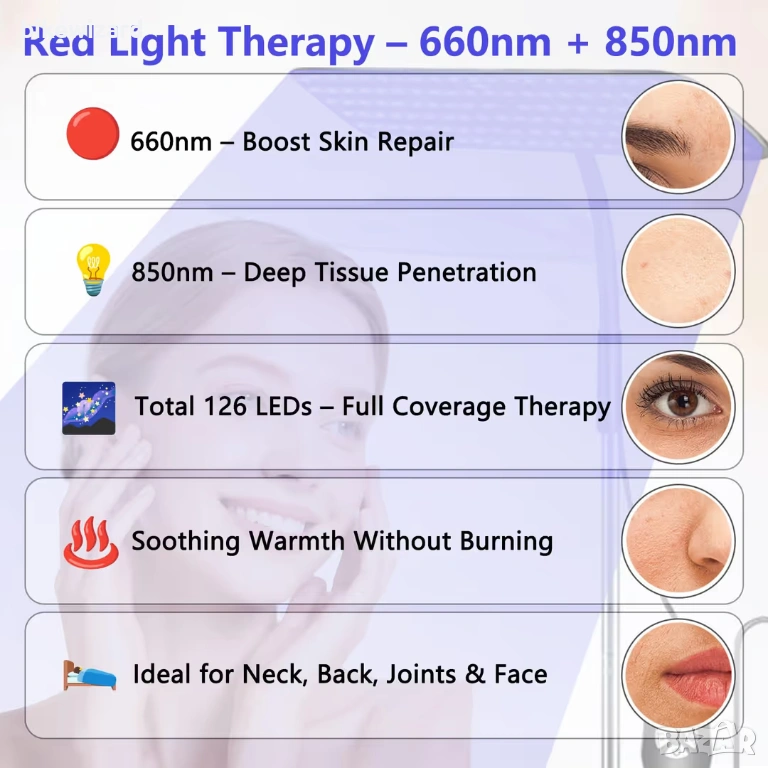 Преносима лампа за тен с прибираща се основа - 50 W солариум за лице и тяло, 126 светодиода, 460 NM + 490 NM синя светлинна терапия, лек домашен солариум