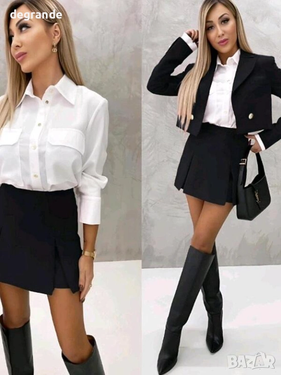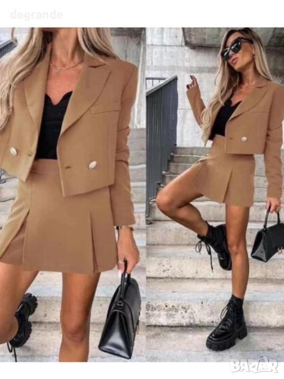 Дамски сет сако с пола панталонки в Бежово и Черно → Обява 53639447