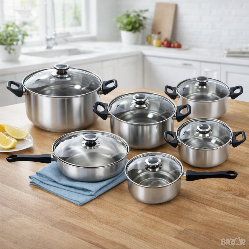 Комплект тенджери от Неръждаема Стомана – 12 части с капаци